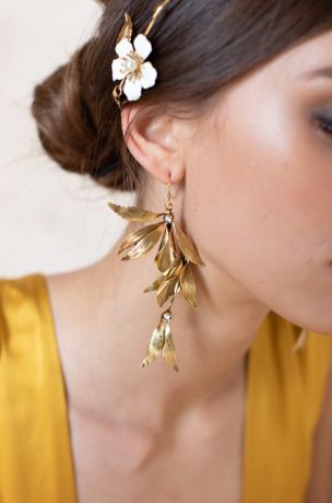 For the bride who loves a statement piece, these striking gold Grecian wing-inspired earrings are the perfect way to wow.