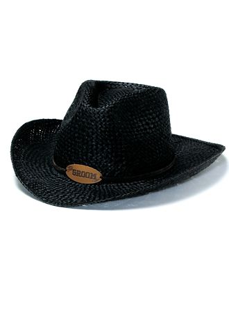 Western Hats are not just for Cowboys anymore! This fun and fashionable hat is great for any spirited Groom. This cowboy hat features a suedette hat band with a leather patch reading "The Groom." Great for a Bachelor Party!
