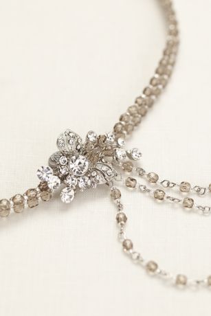 - Halo headband features stunning crystal embellishment and beaded side tassel detail.