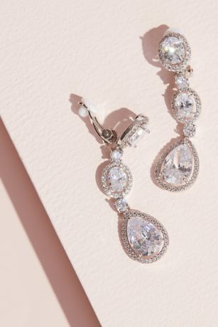 Haloed Cubic Zirconia Drop Clip-On Earrings