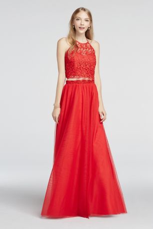 Halter Lace Crop Top with Floor Length Skirt