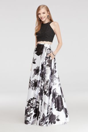 Evoke confidence as you strike a pose in this two piece prom dress! Featuring a lace halter crop top and floral printed skirt for a modest yet sexy look!