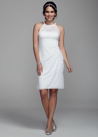 Halter Mesh Short Dress with Illusion Neckline