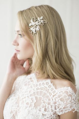 This delicate, hand-wired hair comb features painted leaves and sparkling Swarovski crystal details.