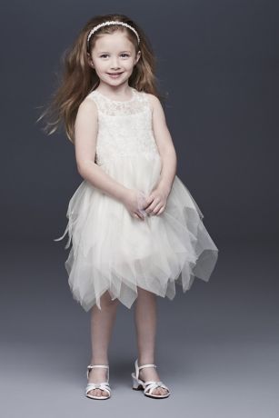 Handkerchief Hem Tulle and Lace Flower Girl Dress
