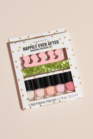 Don't forget about a mani pedi! Get your nails ready for the big day with this adorable kit with five beautiful polishes, toe separators, and a glitter nail file.