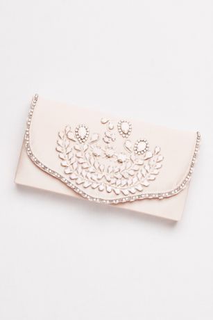 The retro-inspired white beading on this pale satin flap clutch makes it feel like something you unearthed at your favorite vintage boutique.