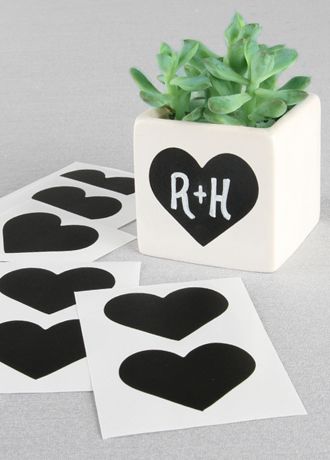 Customize your wedding with these fun heart shaped chalkboard stickers. Use to label favors glassware gifts and more! They are easily removable from most surfaces and can be wiped clean.