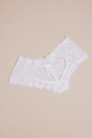 A cheeky lace panty with an open crotch and heart-shaped back cutout.