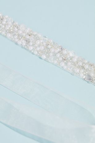 Allover Beaded Pearl and Marquise Cut Crystal Sash