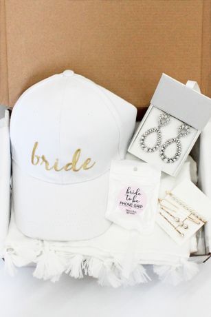 Give your fave bride-to-be a fun surprise! This keepsake mystery box is packed with a secret assortment of five engagement-themed accessories, all in bridal white. To say any more would spoil the surprise, so why not have a light-hearted unboxing moment at the bridal shower for the big reveal?