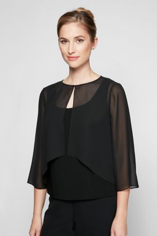 Top your dress with this air-light chiffon capelet. The flowing split sleeves and high-low hemline provide a lovely finishing touch.