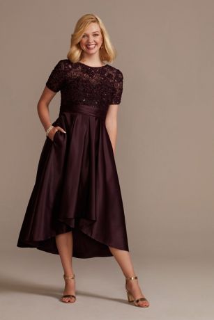 With an intricate illusion soutache bodice and voluminous satin skirt (with pockets!), this high-low gown is a beautiful combination of two textures. A satin waistband further defines the figure.