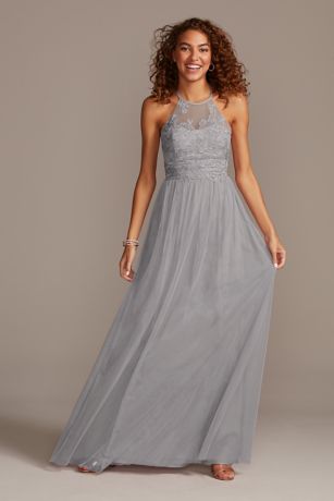 High-Neck Embroidered Soft Net Bridesmaid Dress
