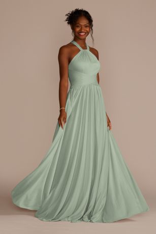 This stunning mesh bridesmaid dress features a high-neck halter design that is both elegant and modern. The mesh fabric adds a touch of sophistication, while the high-neck halter neckline provides a flattering silhouette. Perfect for any bridal party, this dress is sure to make your bridesmaids feel beautiful and confident on your special day. Available in a variety of colors to suit your wedding theme, this dress is a versatile option that will complement any style. Whether you're planning a formal affair or a more relaxed celebration, this mesh bridesmaid dress is a perfect choice for your bridal party.