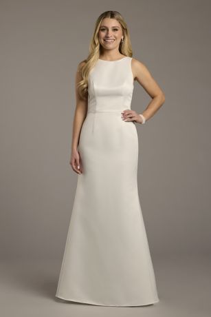 High Neck Satin Bow Back Mermaid Wedding Dress