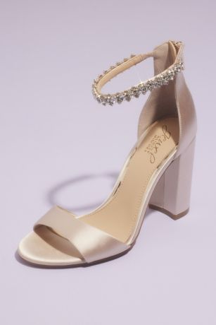 High Satin Block Heels with Crystal Toe Strap