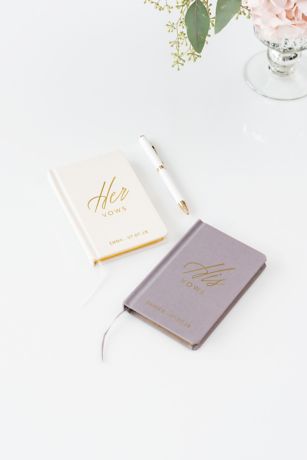 A perfect fit for pockets and laptop bags, this mini hardcover notebook is ideal for the bride and groom who want to write their own marriage vows. Embossed with the words "his vows" or "her vows" in gold foil, it can also be personalized with a name and wedding date.