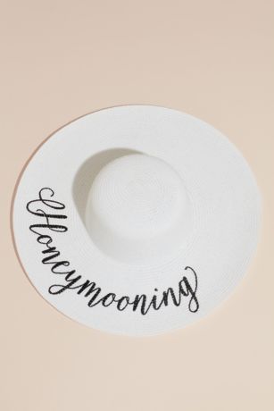 Be it beach or poolside, this wide brim floppy hat is an essential piece to pack for your honeymoon. Adorned with "Honeymooning" in script, it's a great way to announce your special status.