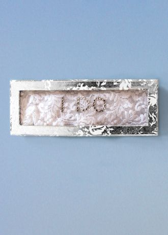 • Fabric: Lace with rhinestones that are used to spell out the words "I Do."