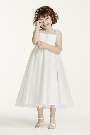 Illusion Cap Sleeve Dot Tulle Flower Girl Dress