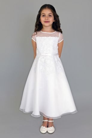 Illusion Cap Sleeve Fit-and-Flare Communion Dress