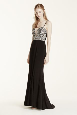 - Spaghetti strap bodice features a super sultry illusion plunge neckline that creates a stunning focal point.