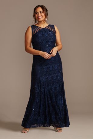 Finished with elegant illusion details at the shoulders, this sleeveless mermaid dress is crafted of stretch sequin lace.