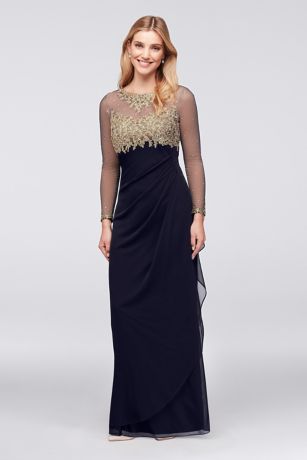 Illusion Long Sleeve Lace and Matte Jersey Gown