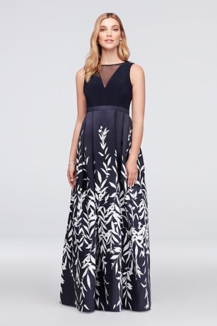Illusion Plunge Leaf-Print Mikado Ball Gown