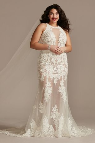 Illusion Sequin Floral Applique Wedding Dress