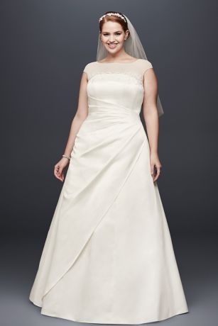 Illusion Side-Draped Satin Plus Size Wedding Dress