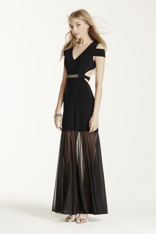 - Jersey dress features a sheer illusion skirt that takes this dress to the next level.
