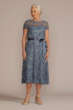 Allover embroidered soutache fabric makes this an elegant choice for any mom or mother figure. A glossy ribbon tie highlights your waist with ease.
