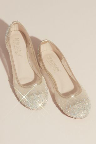Brilliant iridescent crystals saturate the toe cap of these illusion ballet flats, with additional crystals dotting the sides and heel for extra sparkle.