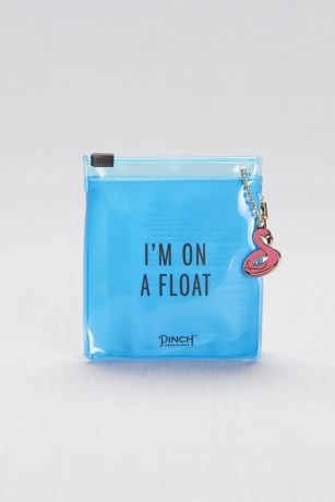 Don't let a perfect pool day deflate unexpectedly: grab this handy kit and be ready for any emergency. Topped with a flamingo pool float keychain, the tiny plastic pouch includes a safety pin, electrolyte tablets, spf 30, aloe gel, hair tie, drink umbrella, deodorant towelette, and a floatie repair patch.