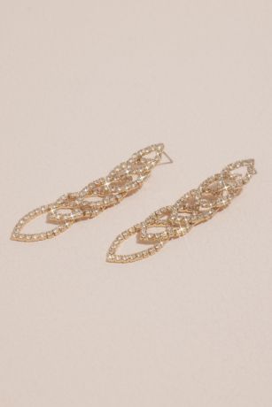 A cool tumble of rhinestone shapes, fading from champagne to clear, create a stunning drop earring.