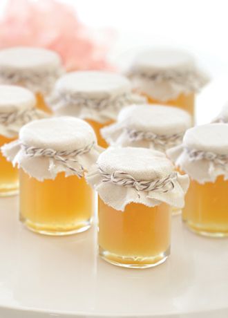 Adorn your candy buffet or tabletop at your event with these adorable glass favor jars filled with any colorful sweets. These just-right sized jars feature a neutral fabric cover, tied with baker's twine.