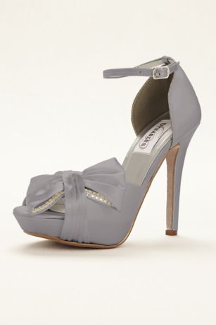 - Platform peep toe pump features an attractive bow with rhinestone trim on the vamp. A generous platform and an adjustable strap with buckle makes this pump both comfortable and fashionable.