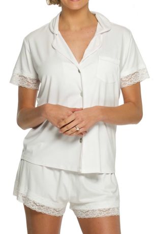Made of a comfy stretch fabric, these adorable Jersey Lace Pajama Sets are perfect for getting ready together on your wedding day!