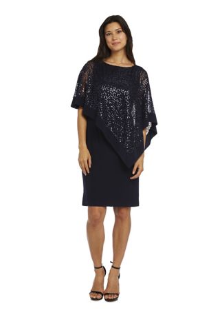 Jersey Sheath Dress with Sequin Lace Capelet