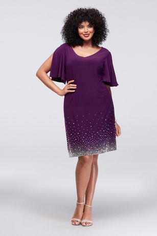 Jersey Sparkle Hem Plus Size Split-Sleeve Shift