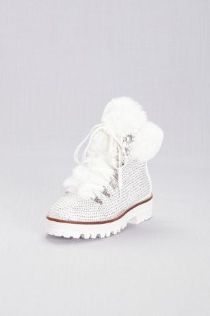 Stay warm in style in these crystal-adorned boots, topped with faux-fur cuff and finished with a chunky lug sole.