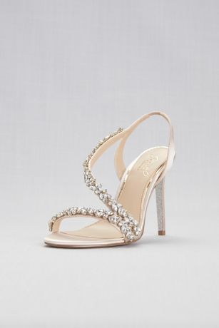 These elegant satin slingback heels, adorned with rows of sparkling crystal straps, are a glamorous option for the big day and beyond.