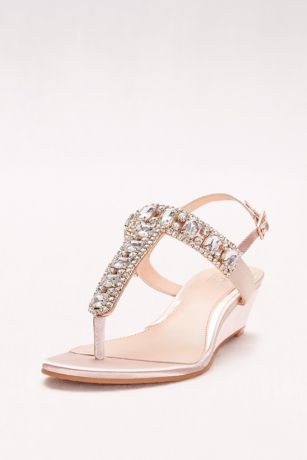 Jeweled Satin T-Strap Low Wedges