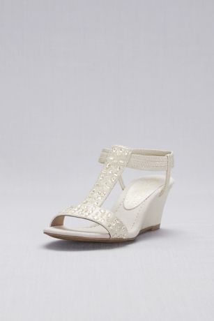 These dressy wedge sandals feature jeweled straps and elastic bands for a stretchy, comfortable fit.
