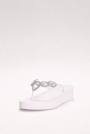 Perfect for beach weddings and pool-side brunches, these wedge flip-flops are splashed with glam crystals.