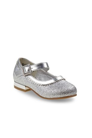 Josmo Girls' dressy low-heeled glittery leather shoe with rhinestones buckle. The safe low heel design is perfect for a comfy walk while looking dashing. Featuring a buckle closure for an easy on and off.
