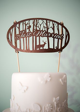 If you are an eco-friendly bride, then this cake topper is perfect for you! This natural wood veneer cake topper is crafted delicately with laser cut details to create this intricate design. It can also be used as a delightful sign to add rustic beauty to your wedding reception and then transform into a charming home decor piece after the wedding.