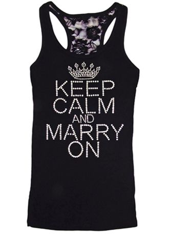 Stunning "Keep Calm and Marry On" set in dazzling clear crystal rhinestones! A lot of bling embellishes the front of this gorgeous tank top for the bride.
